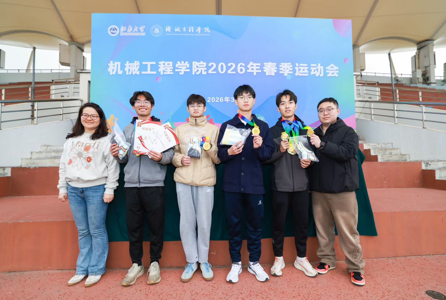 3月15日,机械工程学院2025年运动会在体育中心举行。江南大学体育部副主任赵来安,机械工程学院党委书记高雪梅,机械工程学院党委副书记、副院长刘升恒,各年级辅导员及600余名学生参加开幕式。