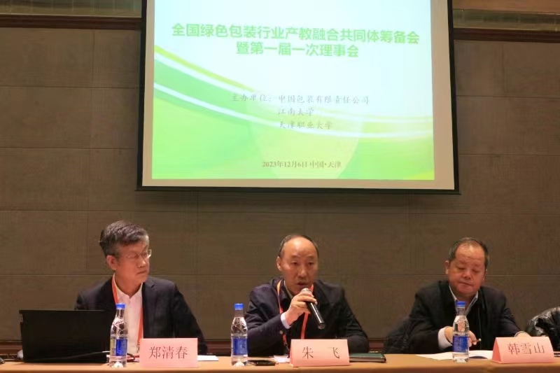 12月6日至7号,中国包装有限责任公司、江南大学及天津职业大学共同牵头组建的全国绿色包装行业产教融合共同体成立大会及第一届一次理事会在津召开,中国包装联合会副会长兼执行秘书长韩雪山,副会长王利,中国包装有限责任公司党委副书记、董事、副总经理宋奎运,党委委员、副总经理何冰,江南大学党委常委、统战部部长朱飞,机械工程学院副院长钱善华,天津职业大学党委副书记、校长郑清春,副校长刘石英,机械工程学院包装工程系有关负责人出席会议,参加会议的还有来自高等院校、行业协会、企业的嘉宾共计200余位代表参会。理事会和成立大会分别由郑清春和刘石英主持。